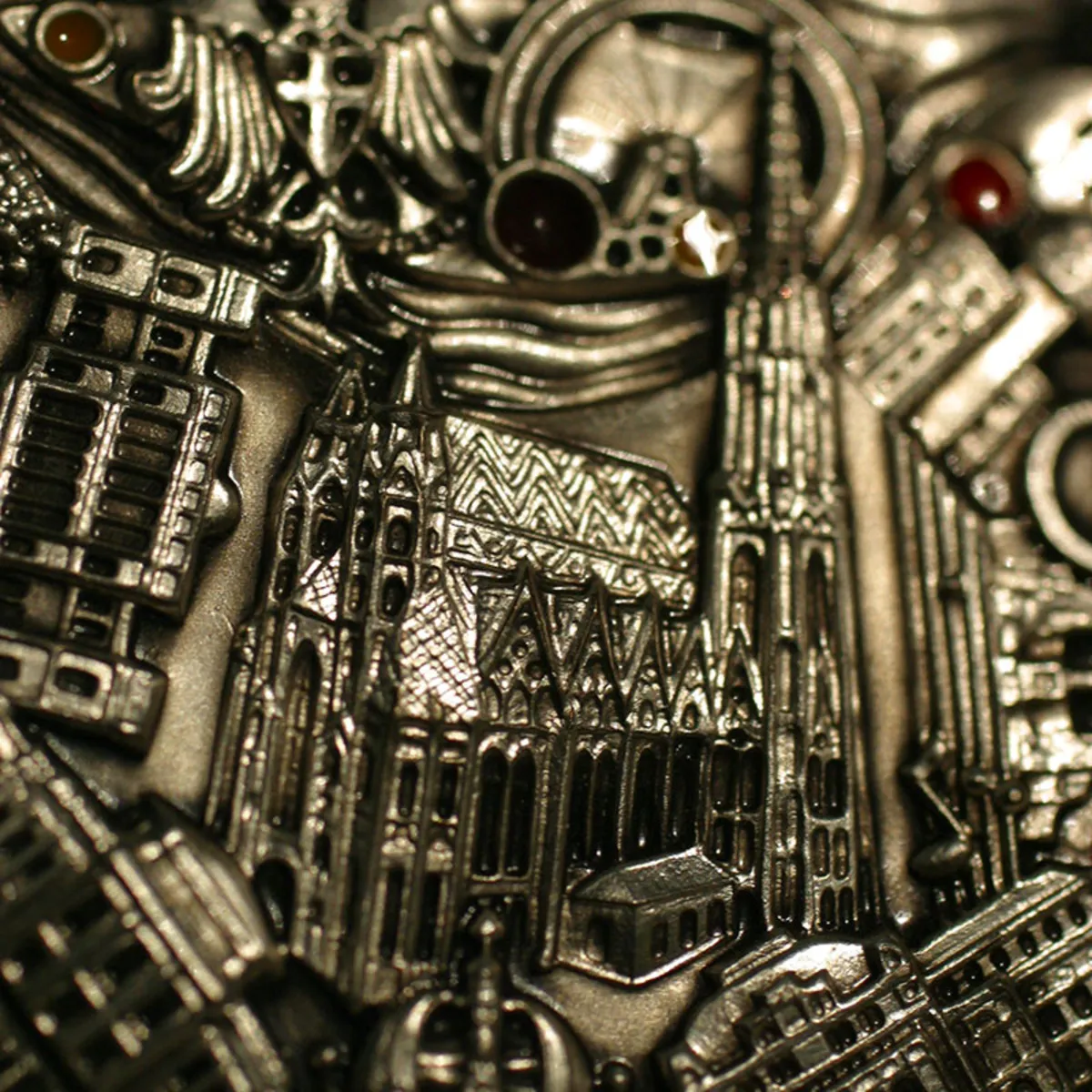 The minted relief appears more three-dimensional if the medal is patinated. The first step is to dip the medal into a special liquid, which makes the medal dark all over. The surface is then very smoothly polished by hand using a soft cloth and a special powder. Lower-lying parts of the motif cannot be reached by the cloth, and the emerging contrast gives the medal a lively three-dimensional effect.