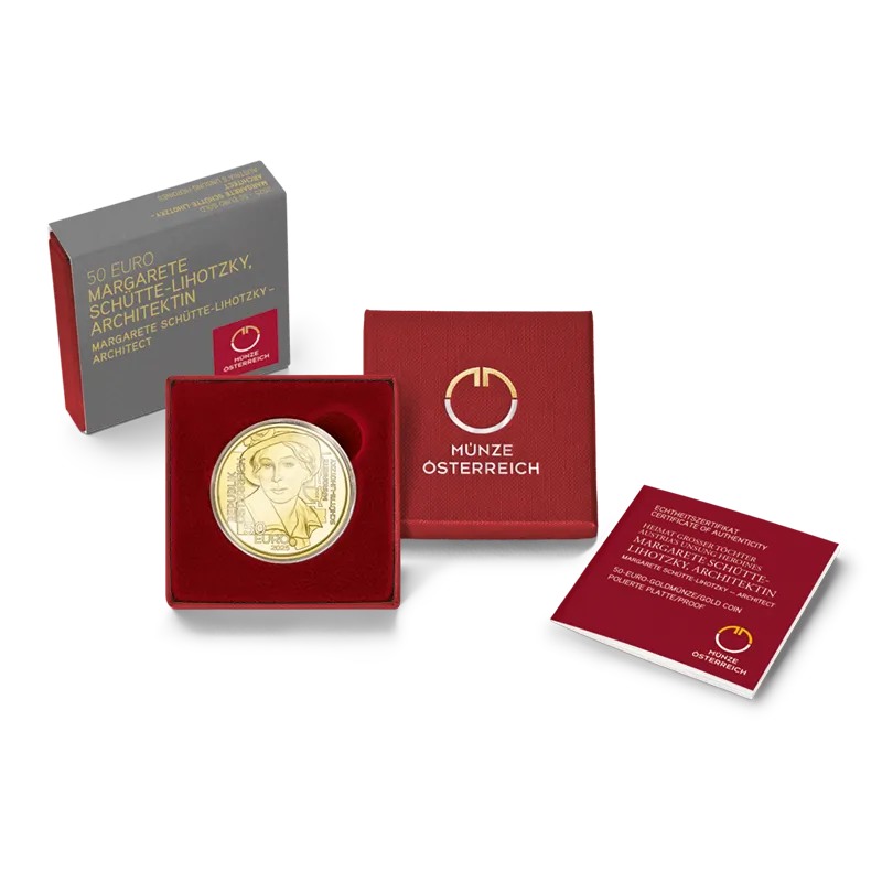 So much more than a groundbreaking architect, Margarete Schütte-Lihotzky was a female pioneer in a male-dominated domain, an ambassador for humane architecture, a woman of great social commitment and a courageous resistance fighter against the Nazis. The third gold coin in the Austria’s Unsung Heroines series pays homage to her extraordinary life's work and unwavering strength of character.