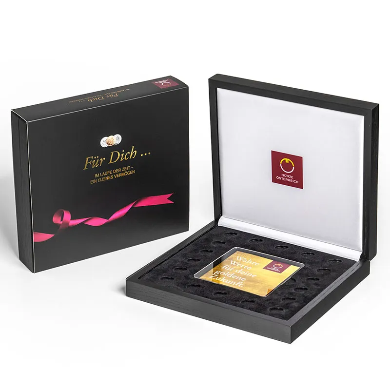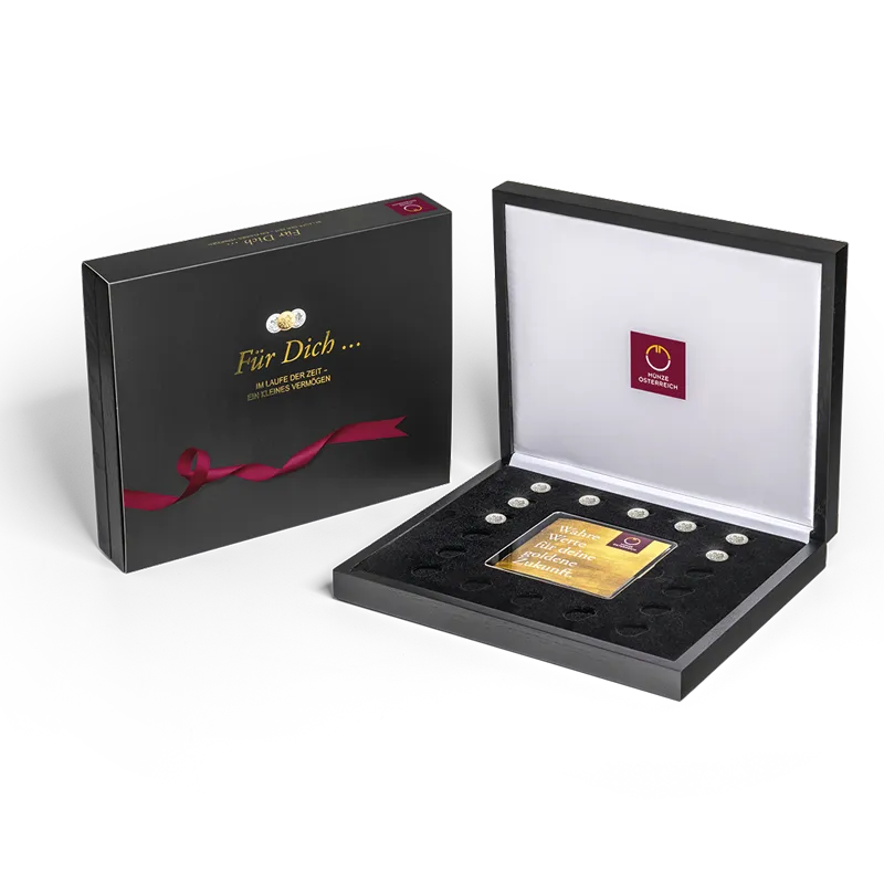 Whether you purchase them at regular intervals or do so in a spontaneous manner over the years to come, building a portfolio of Vienna Philharmonics is the perfect way to help your child make his or her dreams come true. And our specially designed collector case is the perfect place to keep their coins. It is no coincidence that the collector case has room for 18 of them, since it is at 18 that we come of age.