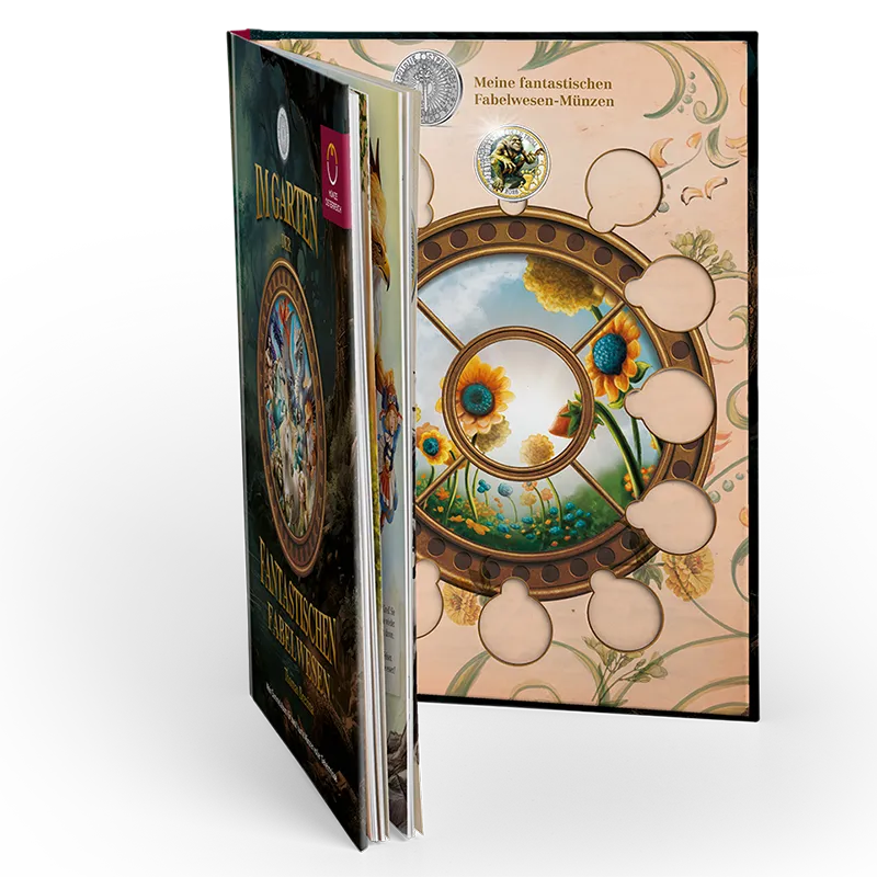 Just like Violetta and Iggy, the heroes of the tale, collectors can also discover the key to this world – the exclusive Mythical Creatures  collector album. Not just the ideal home for all 12 of the 3 euro coins in the series, the album embeds each coin in a vivid fantasy story. Inside, dedicated slots hold the coins securely in place and a transparent protective film shields them like a second skin. This keeps the surface safe from scratches and transforms every page into a perfect blend of protection and presentation.