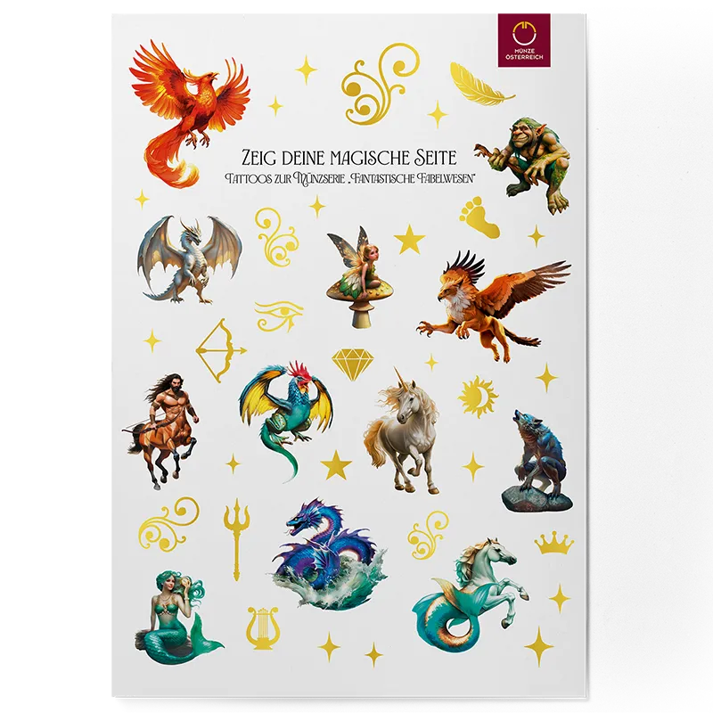 Under black light, the coins reveal their hidden magic as colours glow with brilliance, contours shift before the eyes and the creatures seem to awaken with life. Each page becomes a stage where light, imagination and legend merge into a spellbinding experience.