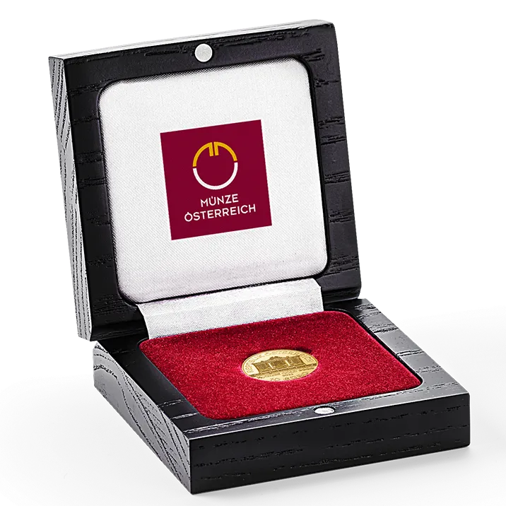 Well stored for the future: The perfect case for your Vienna Philharmonic coin in 1/10 ounce gold whether you are keeping your treasure or giving it away.