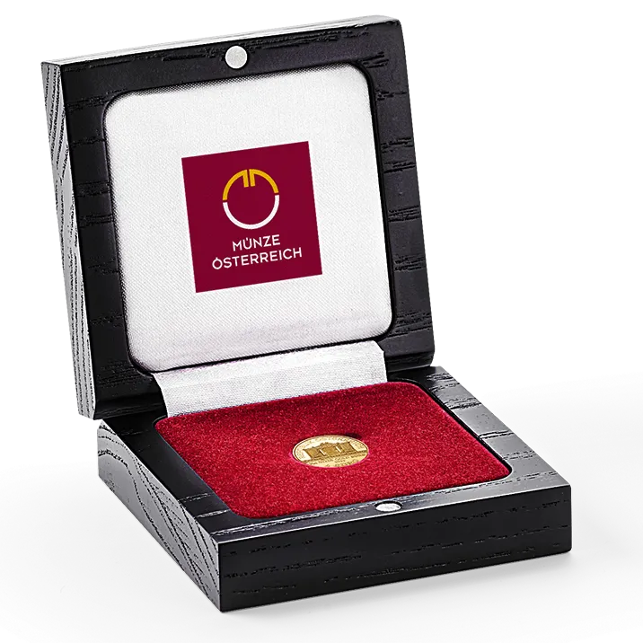 Well stored for the future: The perfect case for your Vienna Philharmonic coin in 1/25 ounce in gold or platinum whether you are keeping your treasure or giving it away.