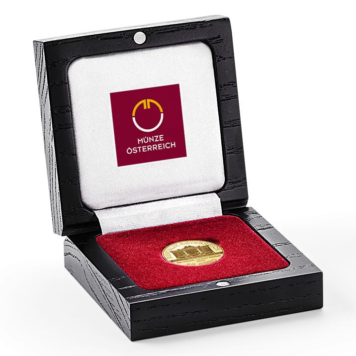 Well stored for the future: The perfect case for your Vienna Philharmonic coin in 1/4 ounce gold, Eight Gulden and 20 crown whether you are keeping your treasure or giving it away.