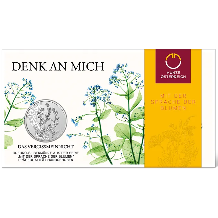 Een prachtige bloem als cadeau voor een prachtig persoon. Laat het vergeet-mij-nietje voor zichzelf spreken. Laat het je grootste wens uitspreken: Denk aan mij! - De munt, een andere munt in de serie "Language of Flowers", is een gedetailleerd meesterwerk: een natuurlijk vergeet-mij-nietje heeft er zijn afdruk op achtergelaten.