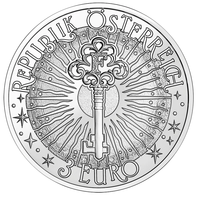 De achterkant van de munt toont een rijk versierde sleutel met de letter "F" voor Fantastische Mythische Wezens. Rondom fonkelen sterren en de onregelmatig vormgegeven letters lijken aan een magische wereld te zijn ontsproten. De waardezijde versterkt dit effect met zijn reliëfstructuur en de onregelmatige rangschikking van de letters, waardoor de hele munt een magische uitstraling krijgt.