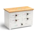 Met zijn compacte afmetingen van 20 x 13 x 10 cm is deze miniatuur ladekast niet alleen een elegante blikvanger, maar ook praktisch en handig - de perfecte thuis voor de munten uit de serie "gschneizt & kampelt".