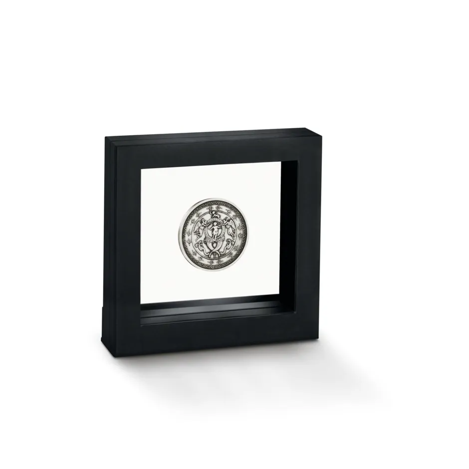 Laat je munten perfect uitkomen in dit prachtige frame. Ingesloten door twee transparante siliconenmembranen lijken de munten te zweven. Beide zijden van de munten kunnen op elk moment worden bekeken, omdat het frame vrij kan worden geplaatst. Het flexibele materiaal past zich aan elke muntvorm aan en houdt de munt stevig op zijn plaats. Het frame kan gemakkelijk worden geopend en weer gesloten met behulp van een magnetische sluiting.