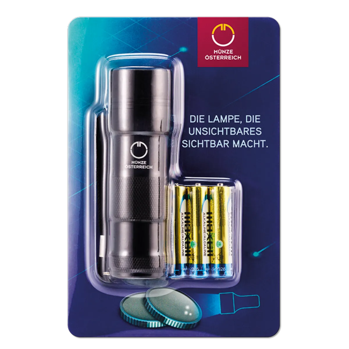 Schau mit uns durch das Bullauge des Unterseeboots „Leuchtende Meereswelten“ und entdecke zwölf reizende Geschöpfe. Noch ein guter Hinweis: Für das volle Erlebnis solltest du eine UV-Taschenlampe griffbereit haben – erhältlich bei Münze Österreich. Mit ihr bringst du ans Licht, was bisher verborgen war.